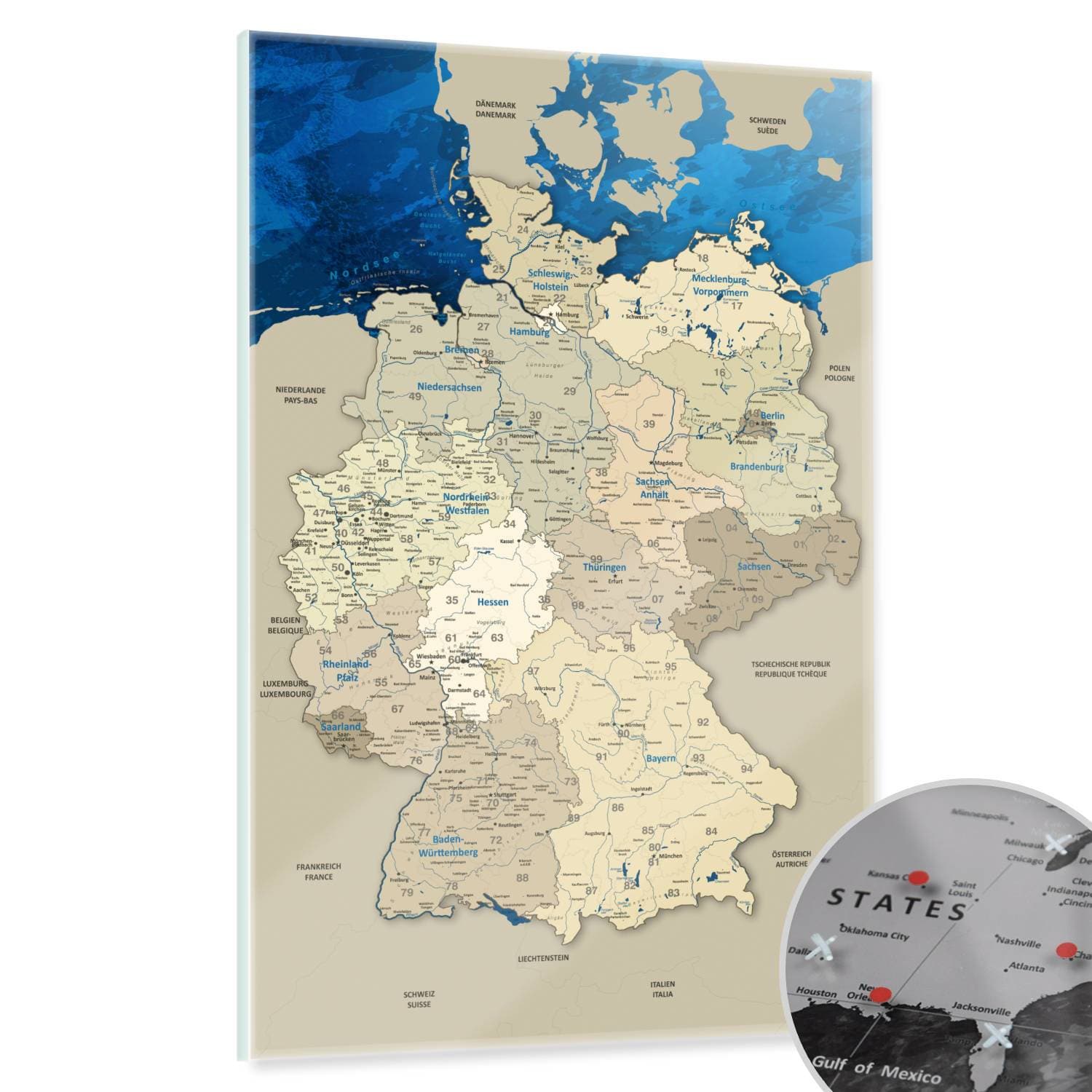 Magnetisches Glasbild - Deutschlandkarte Blue Ocean